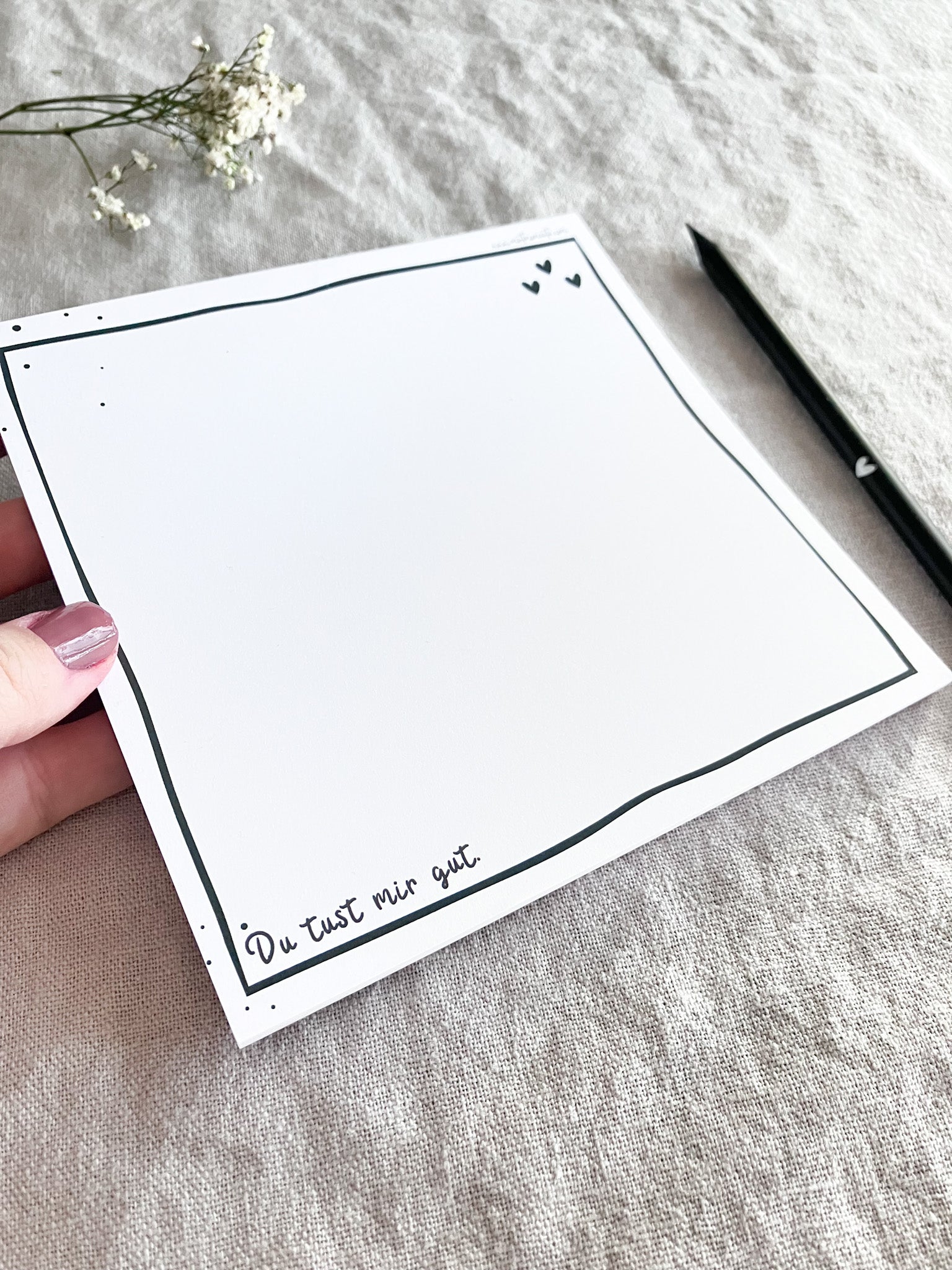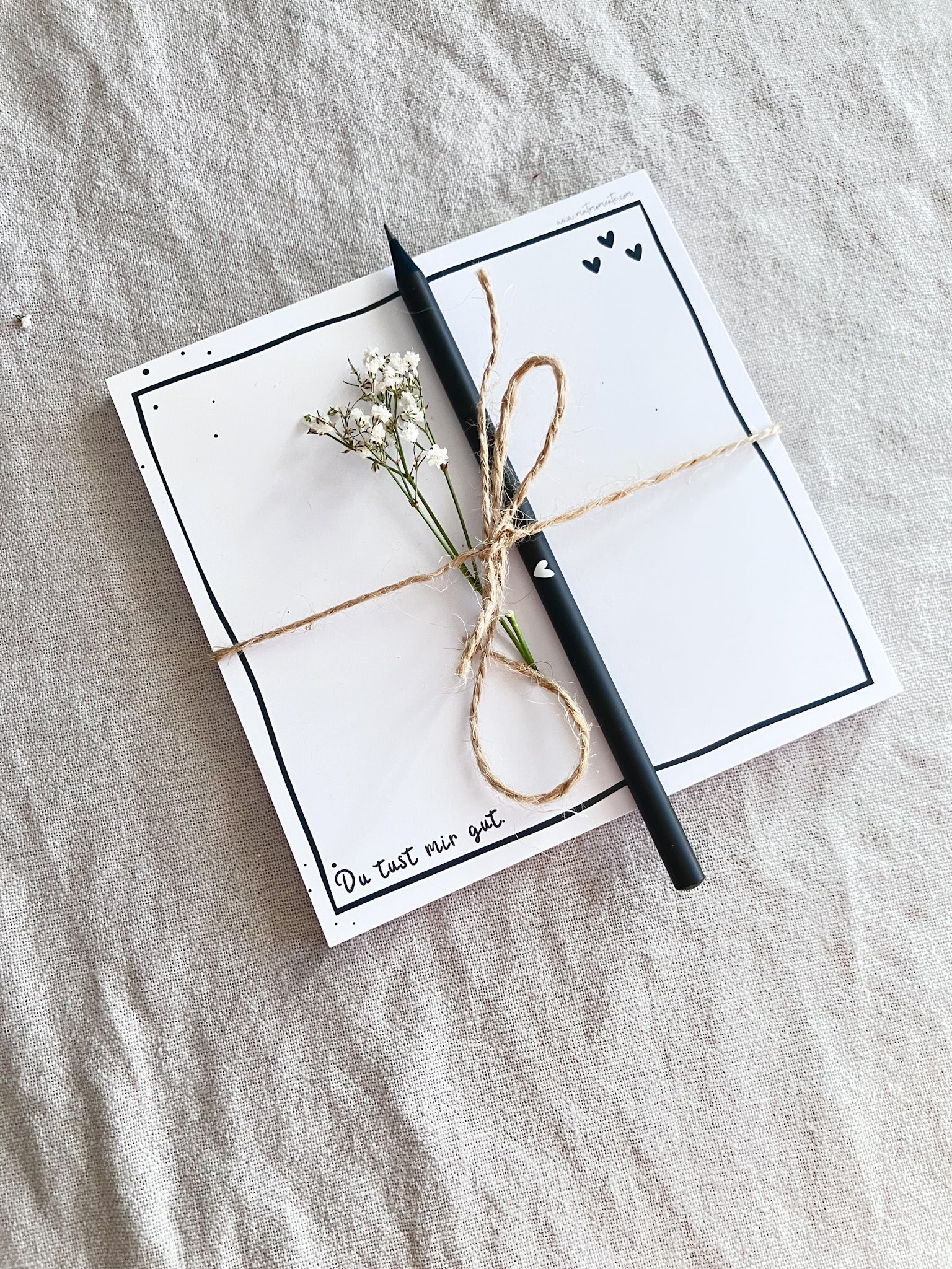 Ein kleines Set für schöne Alltagsmomente: ein minimalistischer Notizblock und ein passender Bleistift – zum Festhalten und Aufschreiben von Erinnerungen. Perfekt als kleiner Gruß für Lieblingsmenschen oder für dich selbst.