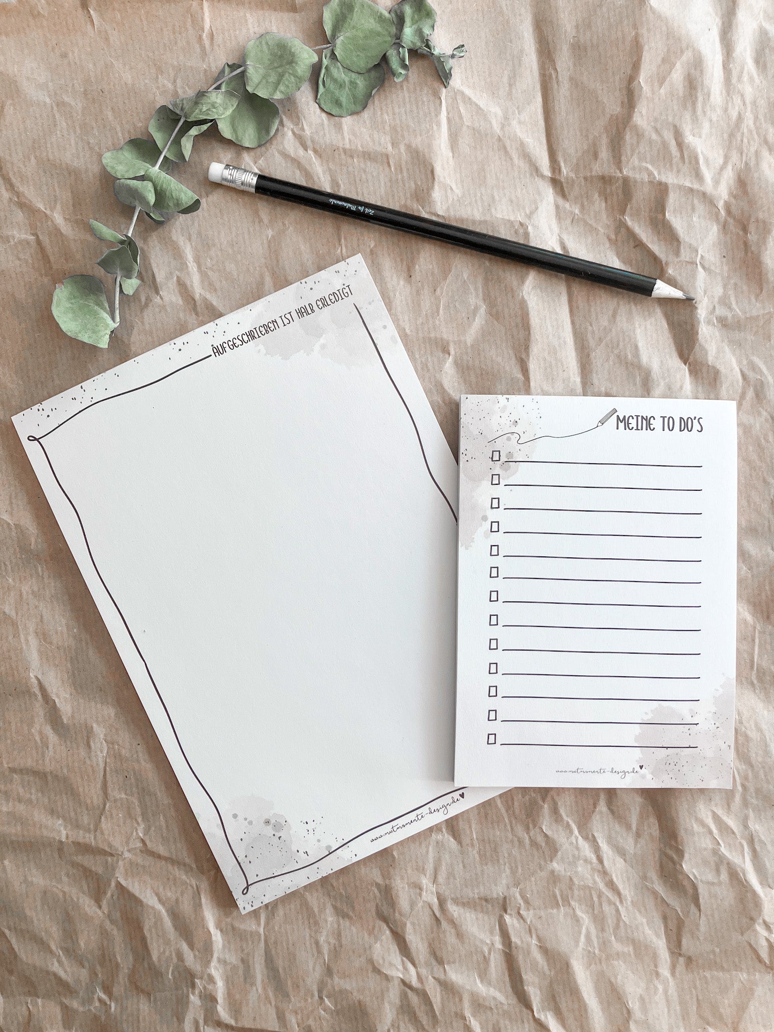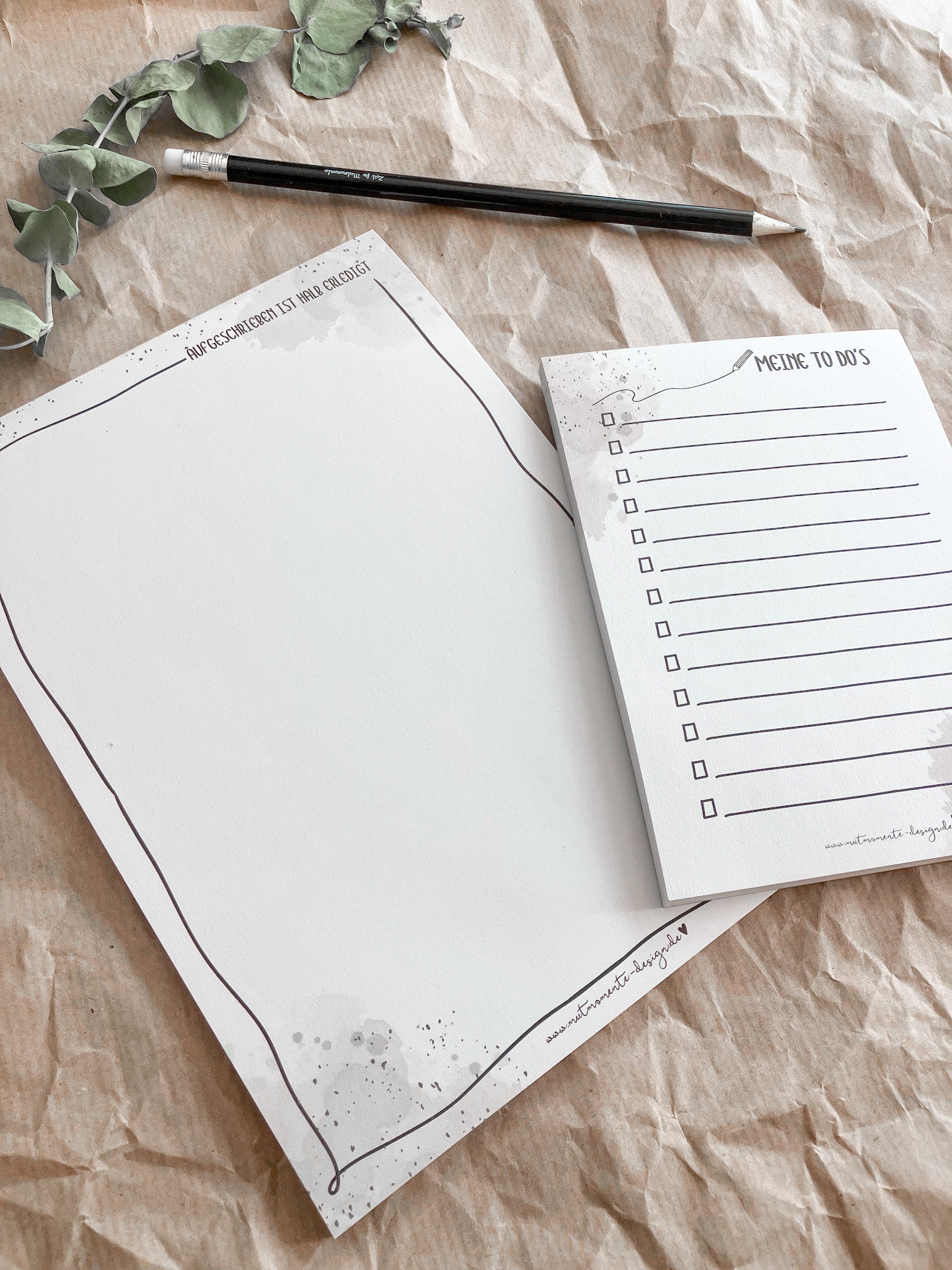 und einem größeren Notizblock (A5) für Gedanken, Ideen oder Herzensnotizen.