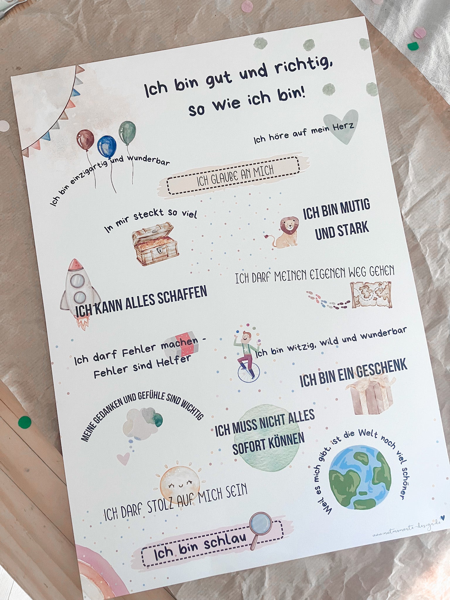 Dieses liebevoll gestaltete Poster schenkt Kindern Selbstvertrauen, Mut und ein Gefühl von Geborgenheit.