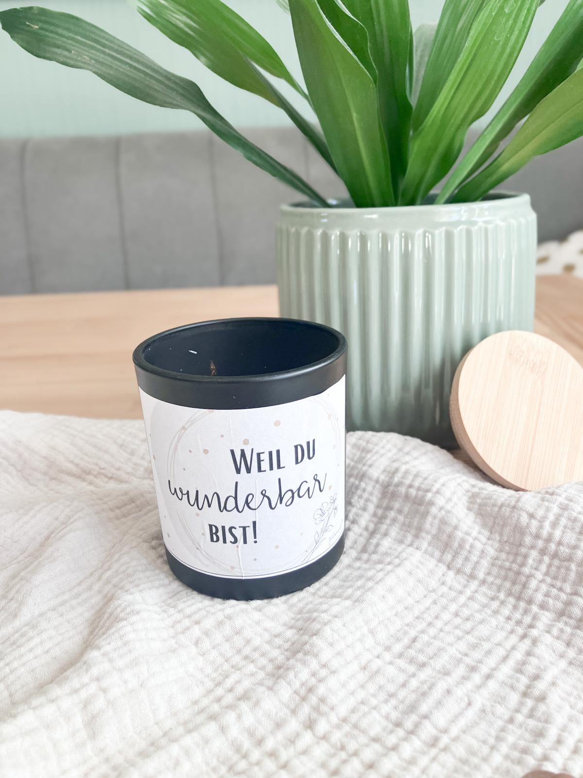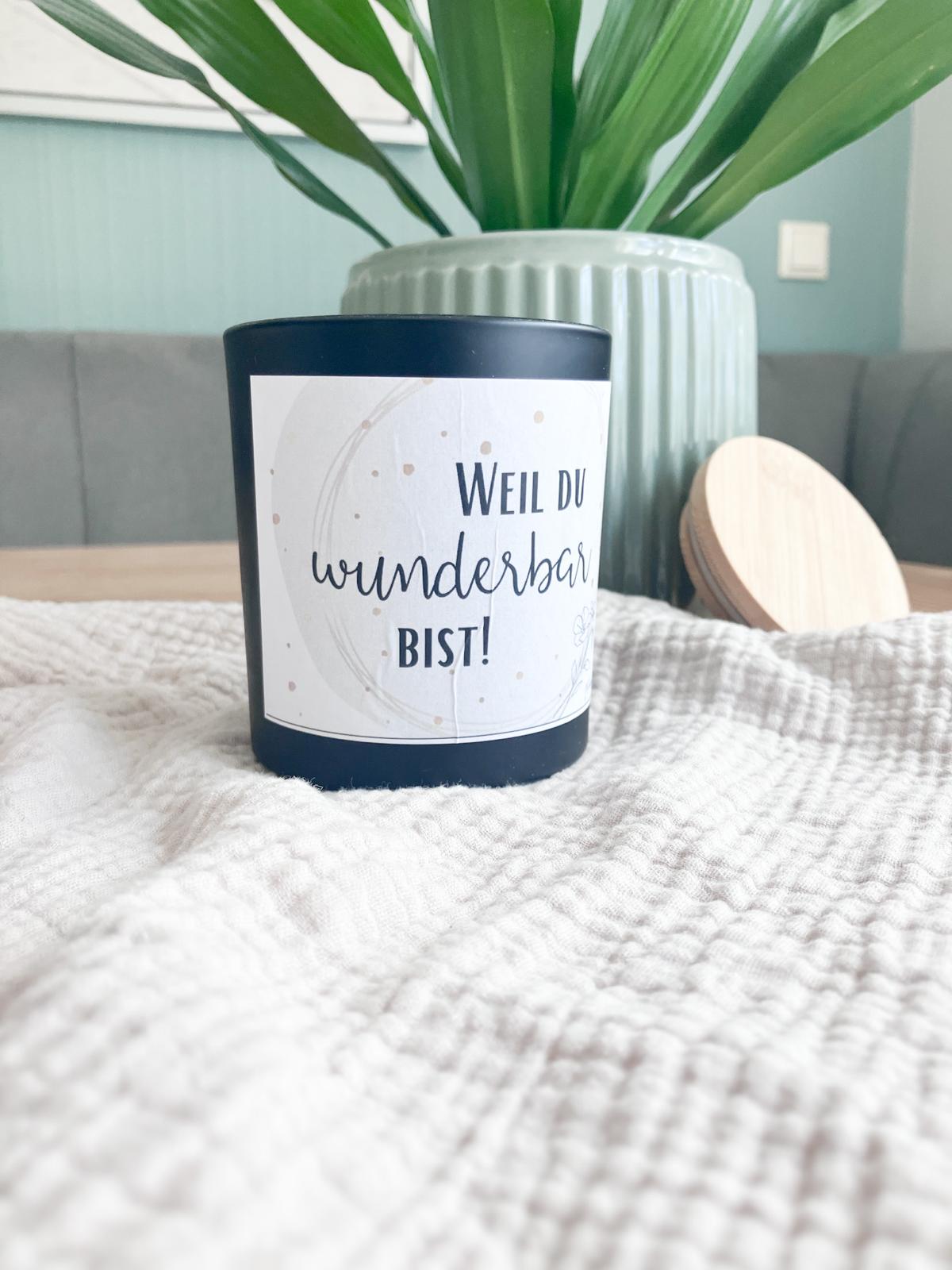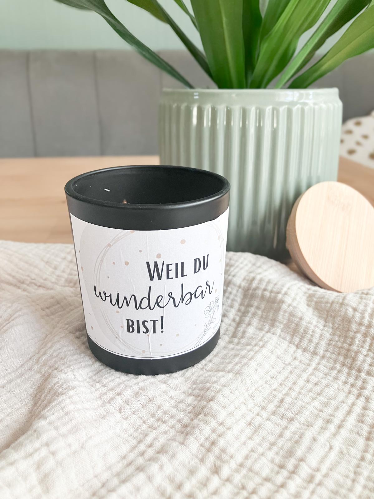 Zünde sie an – und spüre, wie Ruhe und Wärme einkehren. Der Aufdruck „Weil du wunderbar bist“ erinnert dich daran, dass du genau richtig bist, so wie du bist.